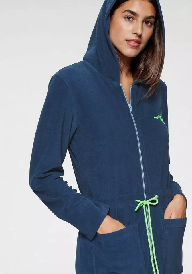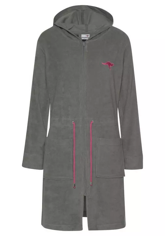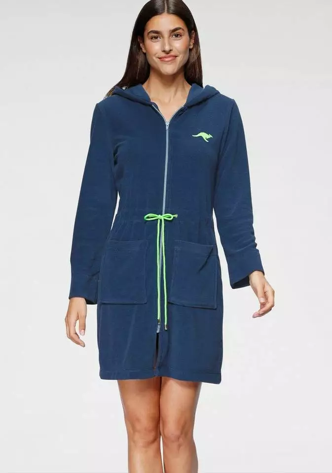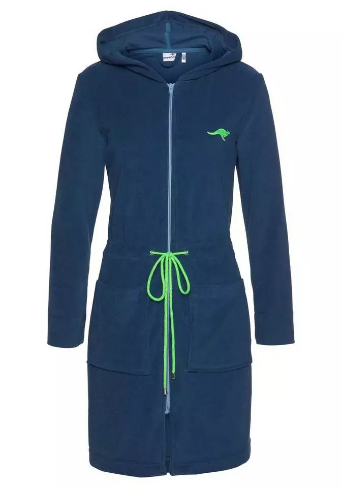 In diesem sportlich, modernen Damenbademantel der Marke Kangaroos machen sie immer eine gute Figur. Der Bademantel Kira überzeugt durch seine schöne Kurzform, mit Kapuze, Reißverschluss und kontrastfarbenem Bindegürtel. Der Stoff ist aus 80% Baumwolle und 20% Polyester hergestellt und unterstützt die Initiative Cotton made in Afrika. Die weiche, anschmiegsame Qualität macht ihn ideal für gemütliche und erholsame Momente auf dem Sofa oder in der Sauna. Natürlich ist der Bademantel bis 60°C maschinenwaschbar und auch trocknergeeignet.