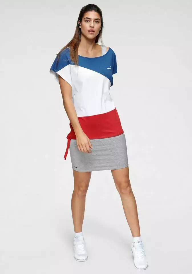 KangaROOS 2-in-1-Kleid (2-tlg) in sommerlicher zweiteiliger Kombination Kleid und Shirt Grau-weiß-gestreift | schwarz, Marine-koralle-gestreift | marine, Royalblau-rot-weiß | hellgrau-meliert, Blau-rosa