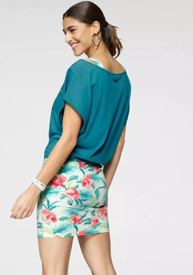 Augepasst! Hier bekommst du was geboten! Nämlich ein Schlauchkleid und ein Oversizeshirt von Kangaroos. Beide Teile zusammen ergeben einen stylischen Urlaubs-Look. Natürlich lassen sich das tropisch gemusterte Trägerkleid und das lockere Rundhalsshirt auch solo tragen. In Kombination allerdings entsteht im Handumdrehen ein echt cooler Style, auf den du dich immer wieder verlassen kannst. Das enge Kleid und das mit einem Knoten-Detail versehene Shirt sind eben perfekt aufeinander abgestimmt. Warum sich schwertun, wenn es auch einfach geht – zum Beispiel mit dem Schlauchkleid und Oversizeshirt von Kangaroos.