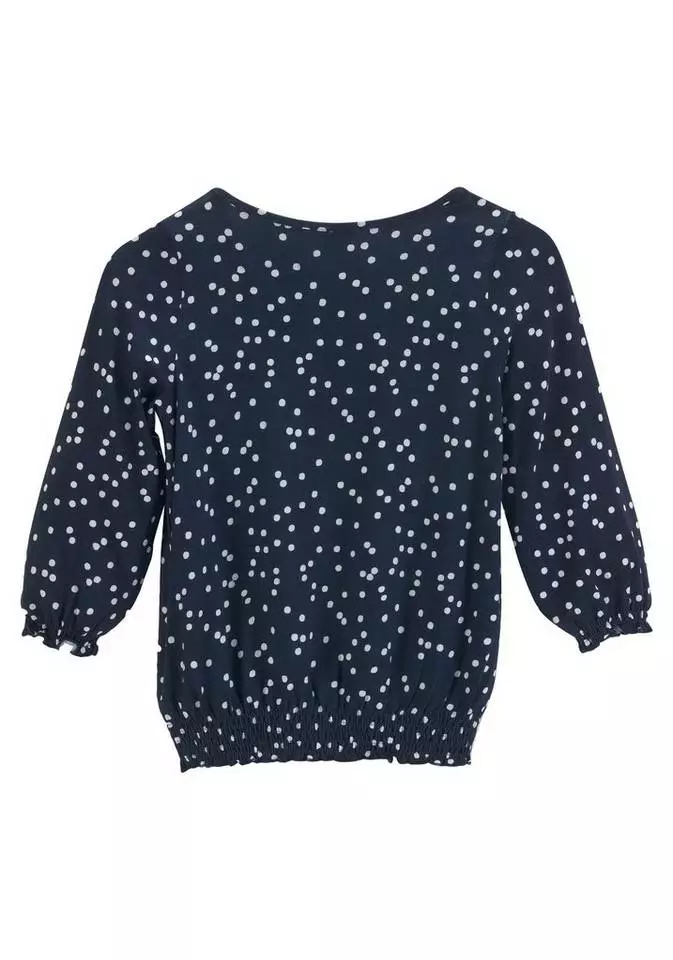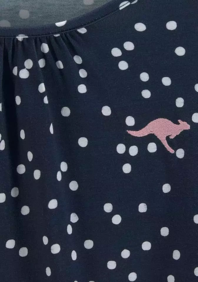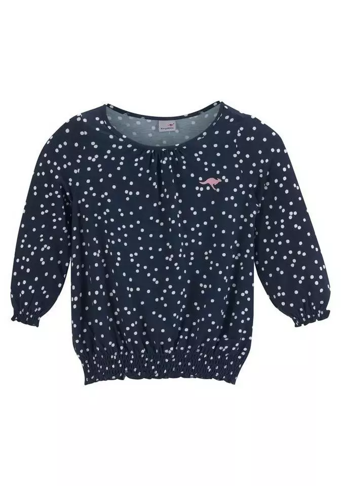 Das kontrastfarbene Tupfenmuster verleiht dem Shirt von Kangaroos einen fröhlichen Look. Sein lockerer Schnitt wird durch elastisch gesmokte Abschlüsse an den Raglanärmeln in 3/4-Länge sowie am verkürzten Saum ergänzt. Elastisch eingefasst ist auch der Rundhalsausschnitt mit feinen Raffungen vorn durch eine schmale Paspel. Ein weiteres Detail ist der kleine Logo in Känguruform vorn. Neben der tollen Optik punktet das Jerseyshirt auch durch seine weiche, elastische Qualität. Sein hübscher Look passt zu coolen Jeans ebenso gut wie zu modernen Röcken. Ein süßer Blickfang: das gepunktete Shirt von Kangaroos!
