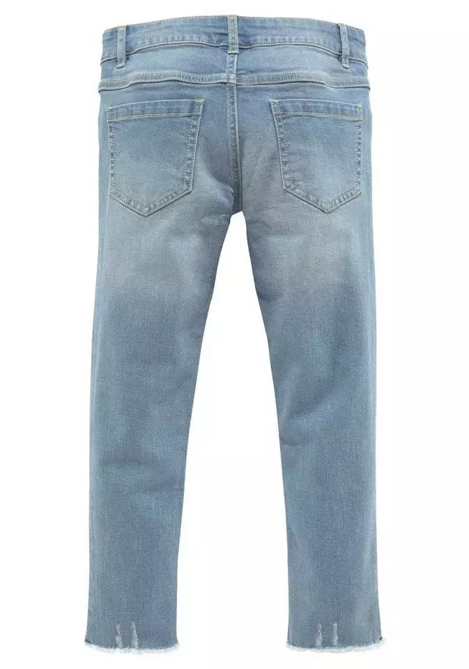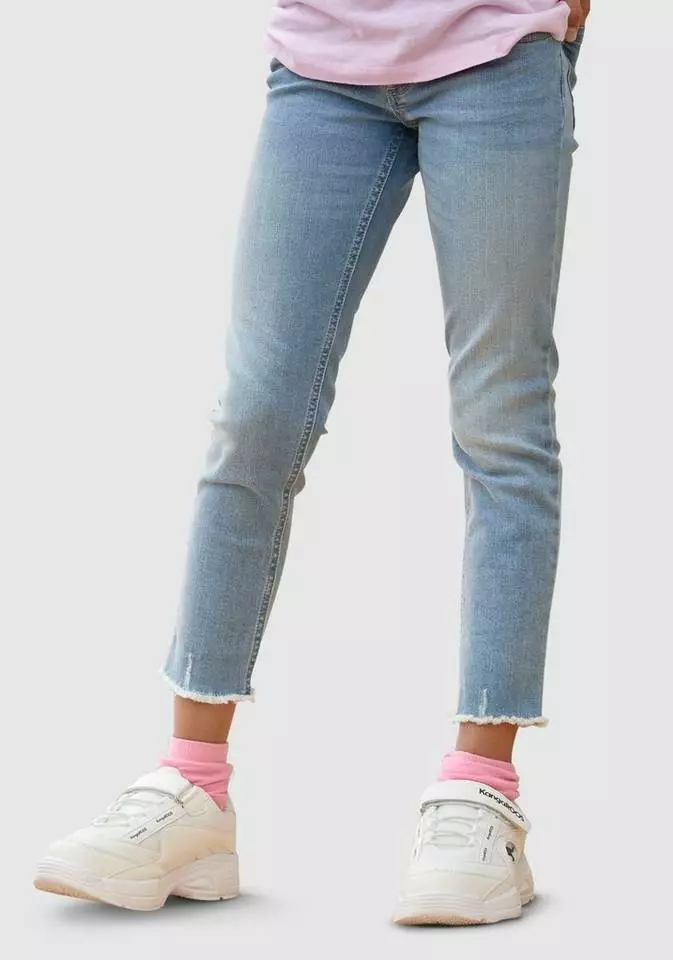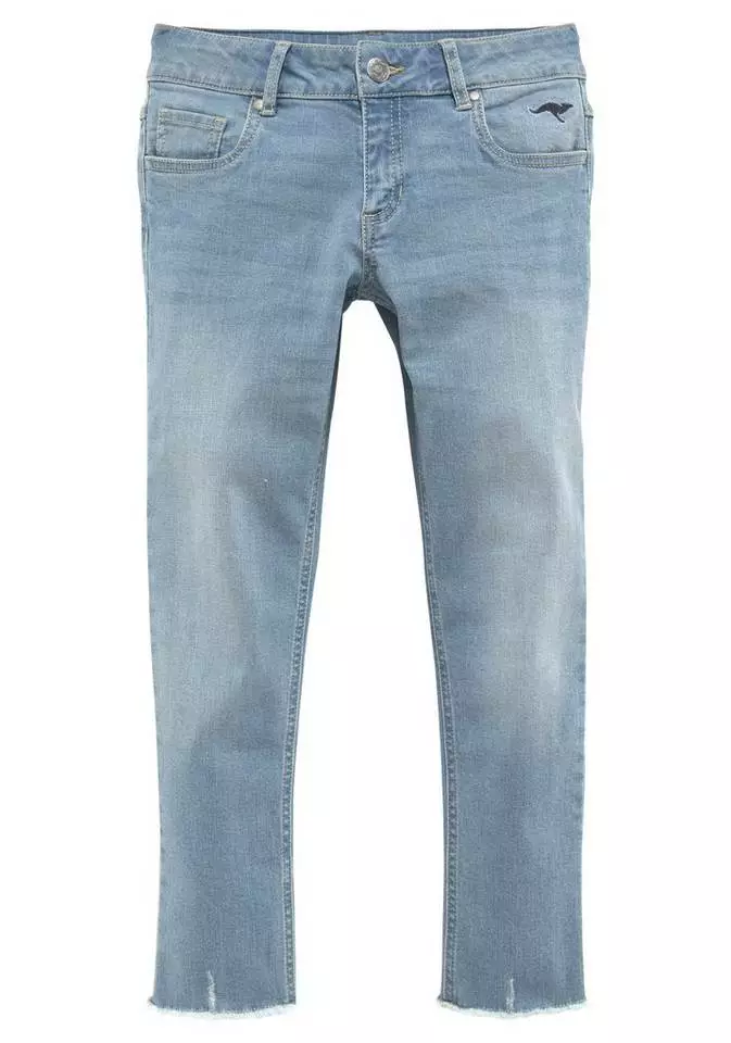 Neue Styles zu kombinieren wird mit der 7/8-Jeans von KangaROOS ganz einfach. Durch die geschnittene Kante ist rockig. Die schmale Beinform der Mädchen-Jeans engt trotz des schmalen Schnitts nicht ein und die etwas niedrigere Leibhöhe sitzt gut etwas unterhalb der Hüfte und steht vor allem großen Teens.