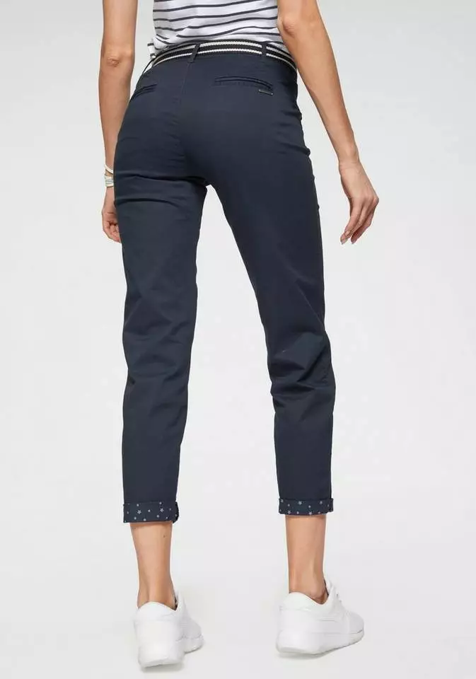 Detailverliebte Looks sind ganz nach deinem Geschmack? Dann sind es die Chinos von Kangaroos garantiert auch. Der klassische Tapered-fit zeigt sich in modischer 7/8-Länge. Wer es gerne noch kürzer mag, lässt einfach die gemusterten Krempelsäume blitzen. Seitliche Eingriff- und Paspeltaschen an der Rückseite punkten als funktionale Extras der Hose. Der gestreifte Webgürtel setzt einen lässigen Akzent. Das seitliche Logo bringt dezent die Marke ins Spiel und rundet die aus elastischem Twill gefertigte Hose gelungen ab. Mehr als ein Shirt und Sneaker brauchst du nicht, um mit den Chinos von Kangaroos entspannt unterwegs zu sein.