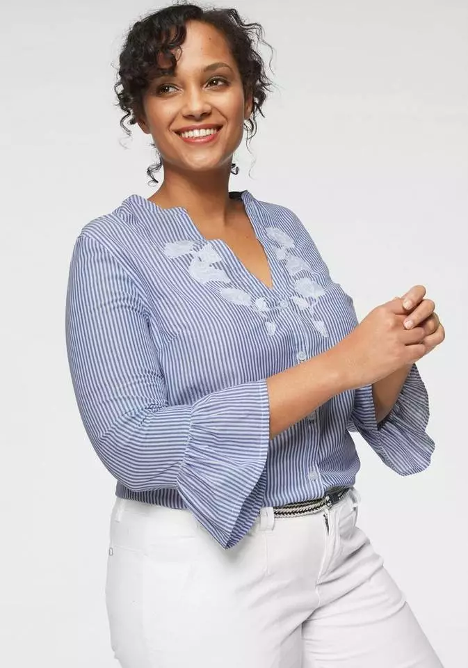 KangaROOS Hemdbluse mit Volants am Ärmel und Blumen-Stickerei vorne