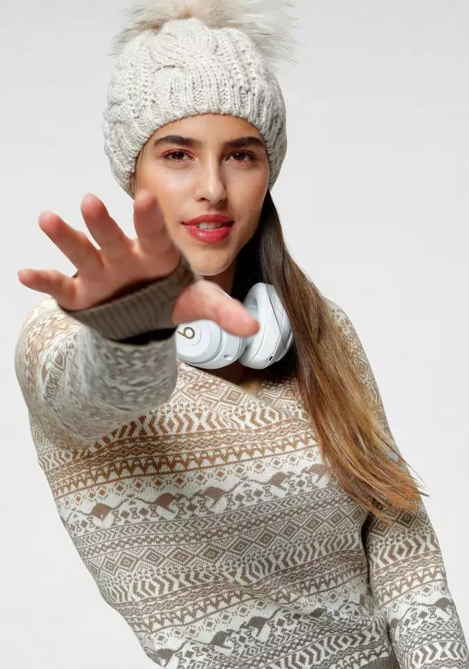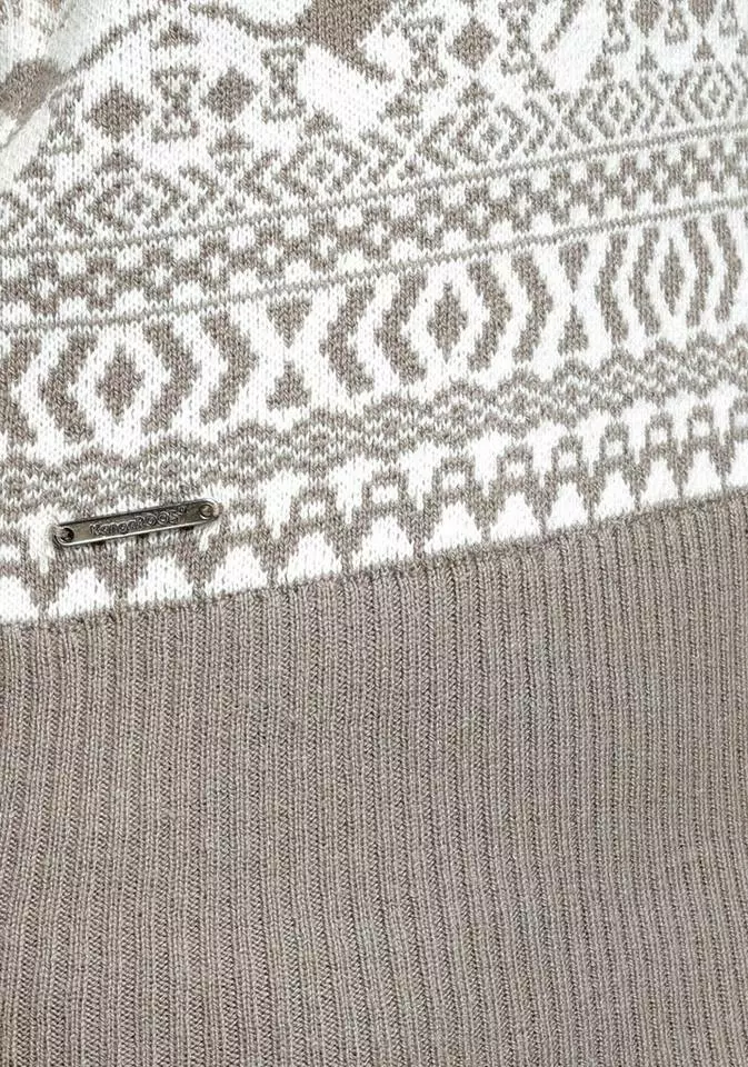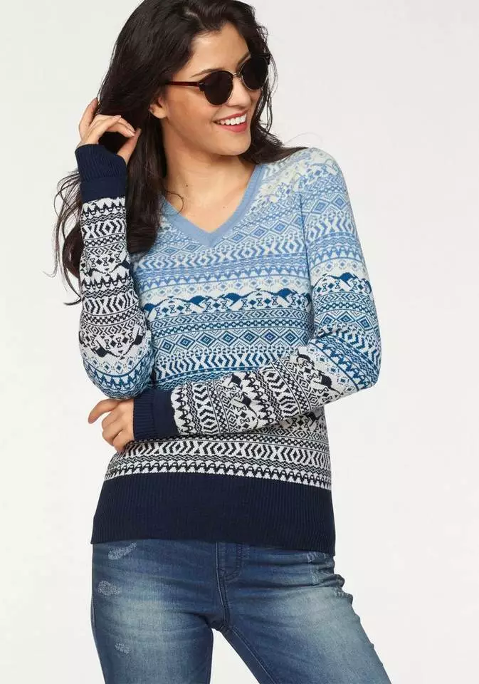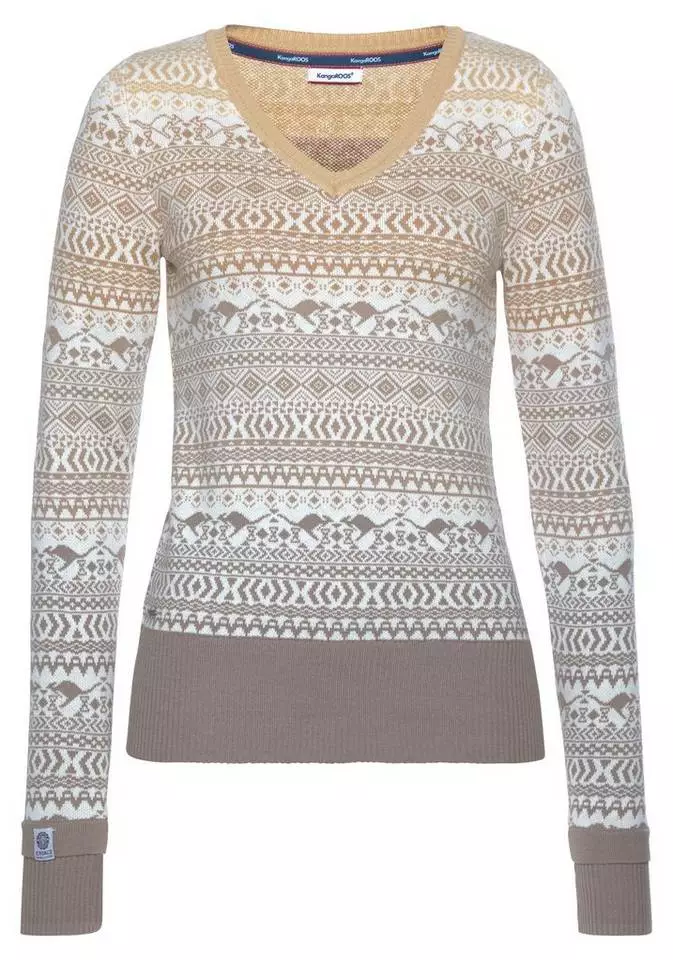 Einfach gemütlich! Der Norwegerpullover von Kangaroos bringt mit seinem traditionellen Strickmuster sportiven Charme in deinen Kleiderschrank. Besonders angesagt: Das feine Norwegermuster wird mit einem Farbverlauf unterlegt, der sich Ton in Ton vom V-Ausschnitt bis zum Saum verdunkelt. Die Rippstrickbündchen des Pullis sind dabei effektvoll in Unifarben abgesetzt, während die feste Strickqualität des figurbetonten Basics dich angenehm wärmend umhüllt. Tipp: Mit einem passenden Rock, Strumpfhosen und Stiefeletten hast du einen trendigen Style für den Norwegerpullover von Kangaroos gefunden.