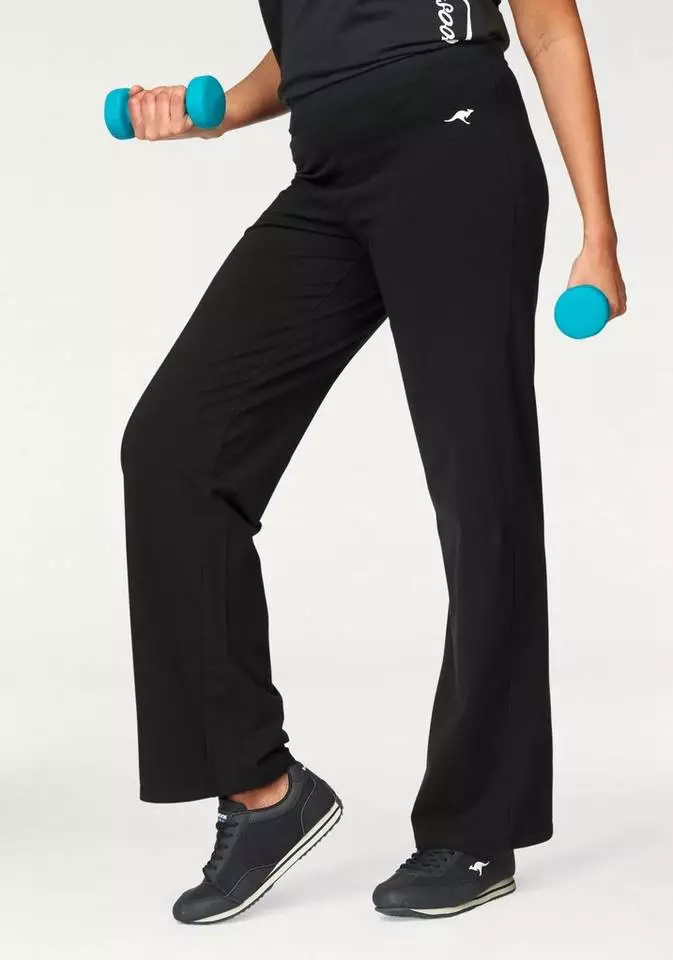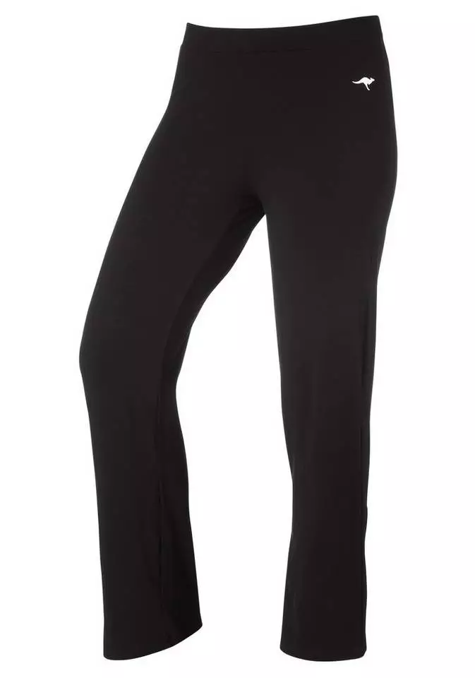 Perfektes Aussehen garantiert! Die Trainingshose von Kangaroos mit kleinem Labelprint und breitem Stretch-Gummibund sitzt dank ihres vorteilhaften Schnitts einfach perfekt: eng an der Hüfte und mit leicht ausgestelltem Bein. Der besonders schöne Fall der leichten Stretchqualität sorgt für Wohlbefinden. Als Kombipartner für diese Palazzohose bieten sich ein Top, T-Shirt oder auch ein Longsleeve an, je nach Lust, Sportart oder Wetter. Die Kangaroos-Trainingshose ist ein Muss für modebewusste Freizeitsportlerinnen.
