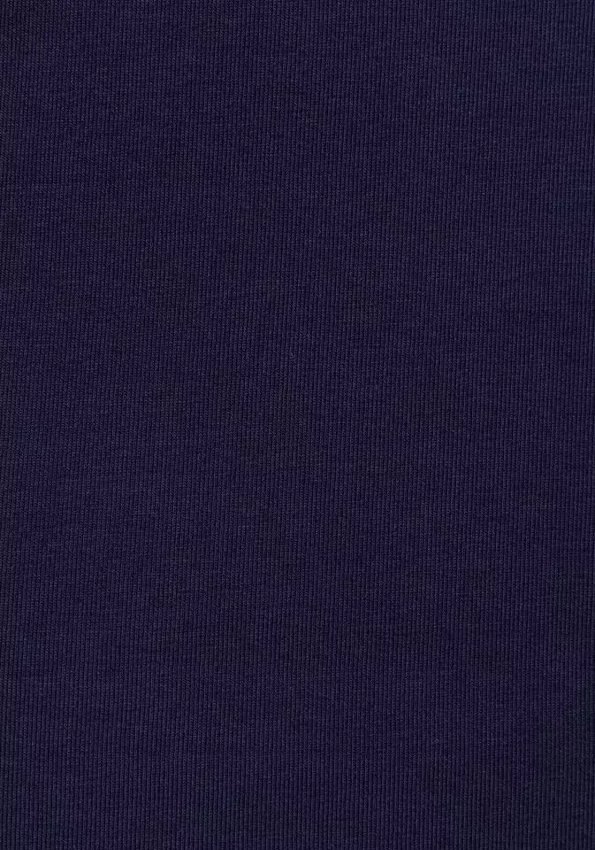 - An Ausschnitt und Ärmel mit gestreiftem Bündchen