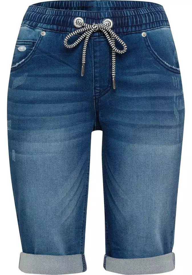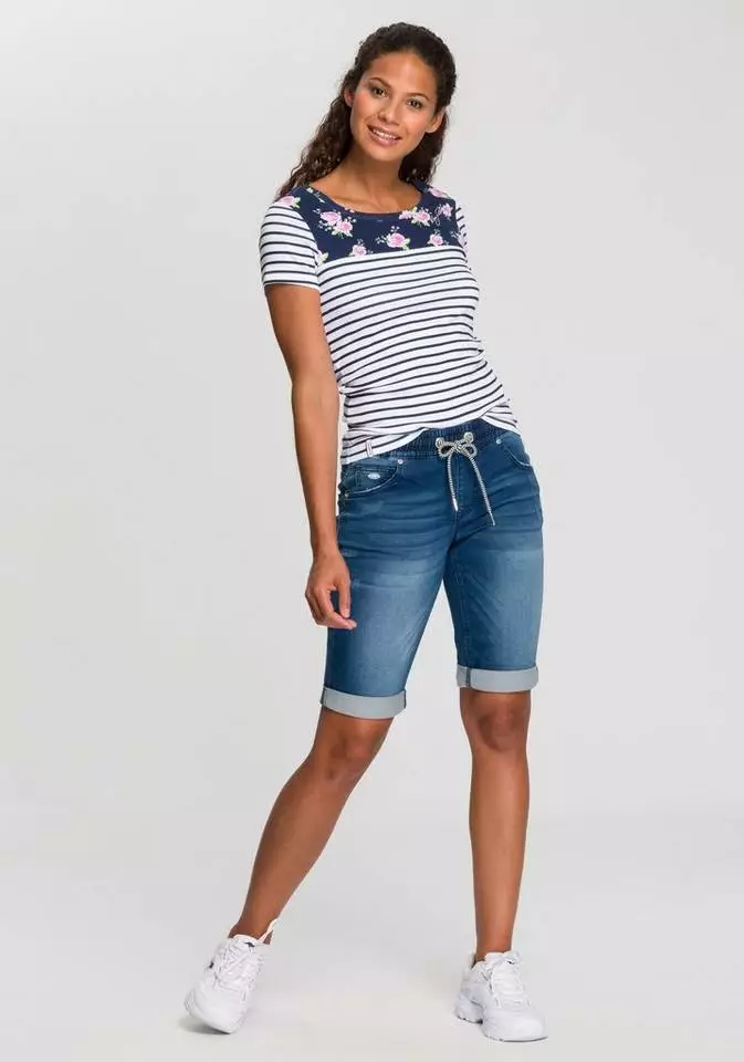Bequem, vielseitig einsetzbar, stylisch: Die Jeansbermudas von Kangaroos wissen Modefrauen um den Finger zu wickeln. Denn genau auf diese Mischung kommt es an. Es braucht bequeme Kleidung, die mit Kombistärke und einer lässigen Optik überzeugt. Das haben dir die Jogpants durch ihren elastischen Tunnelzugbund und das dehnbare Denimmaterial in jedem Fall zu bieten. Der Look wirkt durch den authentischen Washed-out-Effekt, die Abriebstellen, die gestreifte Kordel und den krempelbaren Hosensaum ungemein stimmig. Ein echter Schatz – die Jeansbermudas von Kangaroos.