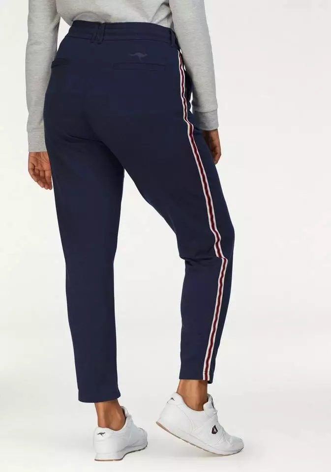 Sportiv, lässig und voll im Trend: Die Jogginghose von Kangaroos schmeichelt dank ihrer passgenauen Stretchqualität der Figur. Seitlich applizierte Kontraststreifen lassen die Beine optisch länger wirken. Der Bund mit Tunnelzug, kleinen Bundfalten und Gürtelschlaufen hebt das Design von klassischen Sweatpants ab. Seitliche Eingrifftaschen sowie ein Logoprint hinten komplettieren die Jogpants gelungen. Mit Shirt und Sneakers kombiniert kreiert die Jogginghose von Kangaroos ein relaxtes und zugleich trendstarkes Casual-Outfit.