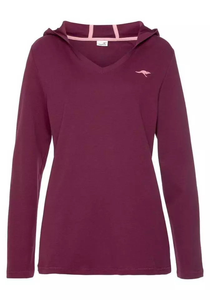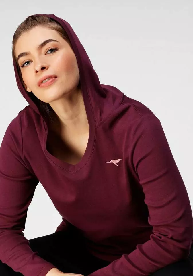 Sportlicher Look à la Kangaroos! Wenn ein Langarmshirt mit Kapuze in Erscheinung tritt, wirkt das Outfit gleich viel lässiger. Für einen sportlichen Style braucht es eben nicht viel, sondern nur die richtigen Details. So zeichnet sich das Kapuzenshirt noch mit einem V-Ausschnitt und einer kontrastfarbenen Logostickerei aus. Aufgrund der reinen Baumwollqualität kommt ein hoher Tragekomfort dazu. Ein vielseitig kombinierbares, sportliches Kapuzenshirt von Kangaroos, das auch mit einer Jeans wunderbar harmoniert.
