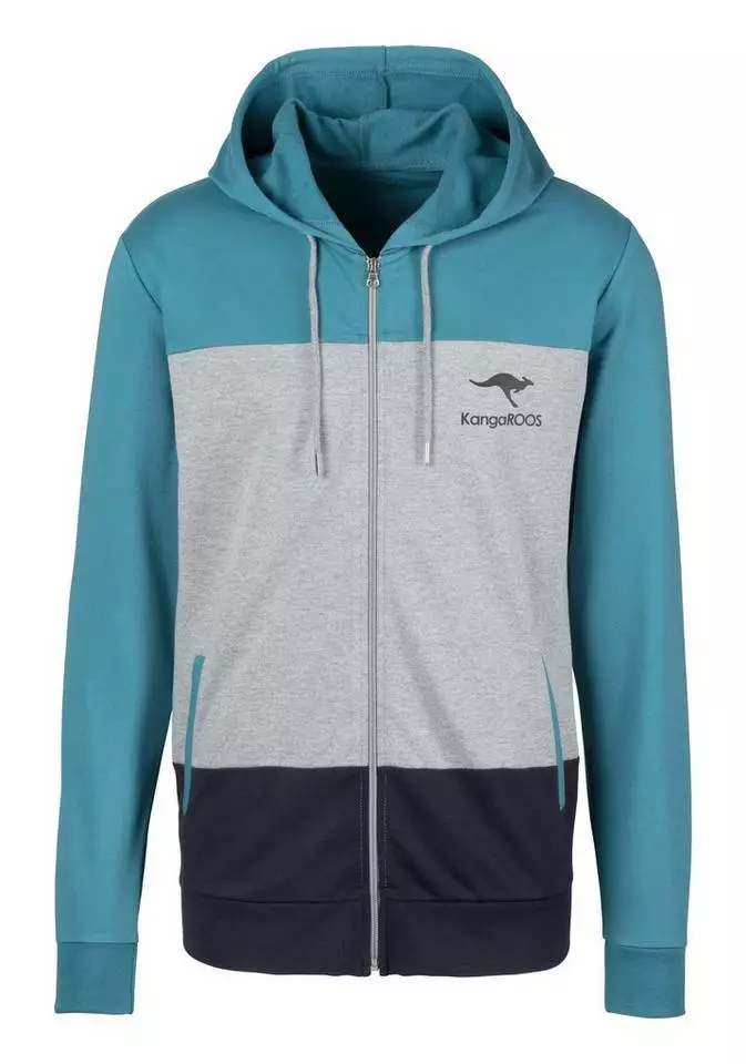 Kangaroos zeigt mit seiner Kapuzenjacke, wie cooles Colorblocking geht! Der Logoprint links auf der Brust ist die perfekte Ergänzung zu den Farbblöcken – und das gilt auch für den farblich abgesetzten Reißverschluss, den Kordelzug an der Kapuze sowie für die kontrastierenden Taschenleisten. Formstabile Rippabschlüsse am Saum und an den Ärmeln verleihen dem Hoodie seine überragende Passform. Die leichte Kapuzenjacke von Kangaroos aus hochwertigem Baumwoll-Mix wird spielend leicht jedes andere Sweatshirt in deinem Kleiderschrank verdrängen!