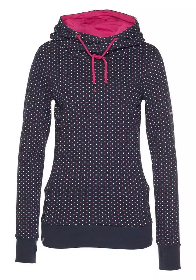 Detailverliebt: Das lange Kapuzensweatshirt von Kangaroos zeigt dir, was ein toller Mustermix ist. Mit einem Polkadotprint in Multicolor-Optik ist der figurbetont geschnittene Hoodie lebendig gestaltet. Dazu setzt das kontrastfarbene Futter in der Kapuze mit Bindeband und den seitlichen Eingrifftaschen starke Akzente. Für deinen Komfort und einen guten Sitz sorgen die unifarbenen Rippbündchen des Sweaters, die an den Ärmelsäumen sogar praktische Daumenlöcher für dich parat halten. Logodetails auf einem Ärmel und am Saum runden den Kapuzenpulli ab. Zu deiner Jeans und Stiefeletten oder mit deiner Lieblingsjogpants und bequemen Sportschuhen, das Kapuzensweatshirt von Kangaroos hat es einfach drauf.