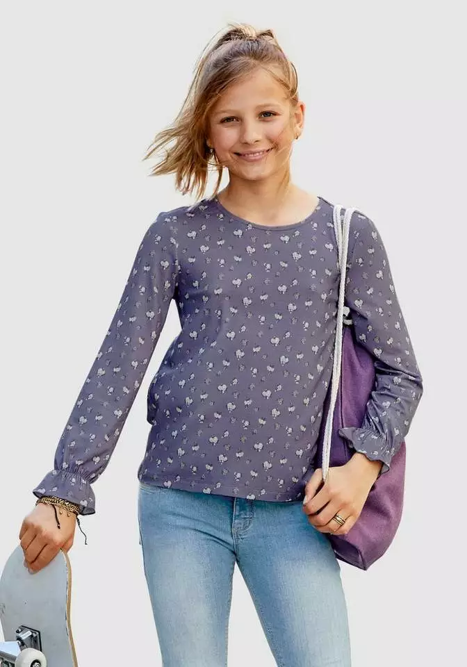 KangaROOS Langarmshirt mit kleiner Gummiraffung am Ärmel