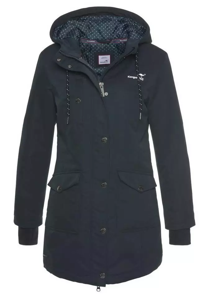 Bist du gerne modisch unterwegs, dann ist die Langjacke von KangaROOS gut geeignet für dich. Mit dem 2-Wege-Reißverschluss und den Knöpfen ist sie praktisch, wenn du mehr Bewegungsspielraum brauchst. Der Badge wirkt lässig. Die Langjacke ist Po-bedeckend und figurumspielend geschnitten, sodass du dich nicht eingeengt fühlst. Die Kapuze kannst du mit einem Kordelzug in der Weite verstellen. Dank der Fleece-Fütterung bleiben Ohren und Kopf geschützt. . Viele praktische Taschen bieten dir Platz in deiner Jacke. In den Innentaschen findest du Platz für Kleinigkeiten.