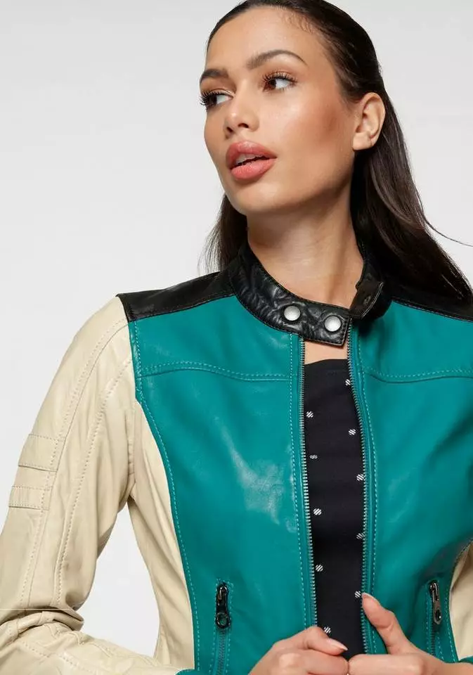 Schau dir die Lederjacke von KangaROOS mal genauer an. Die Lederjacke ist taillenlang und tailliert geschnitten, so liegt sie leicht an und betont deinen Körper. Der Kragen mit Knöpfen steht nach oben und liegt am Hals an. Mit den Reißverschlusstaschen hast du Platz, um Wertgegenstände sicher zu verstauen.