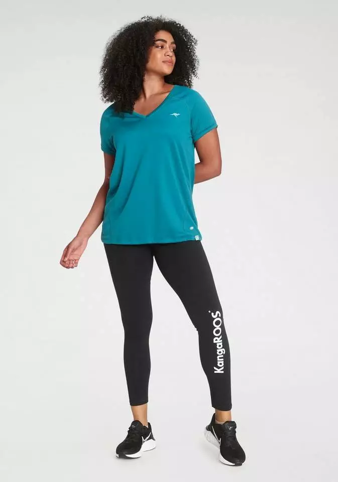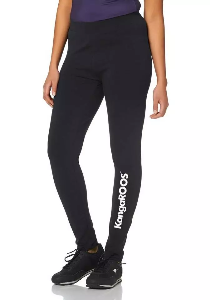 So ein stylisches Duo von Kangaroos sollten sportliche Ladys immer im Kleiderschrank präsent haben. Je nach Wetter und Laune ist man mit der langen oder der 3/4-langen Leggings auf dem sportiven Catwalk perfekt gestylt unterwegs. Der große Logoprint am Bein der langen Leggings verleiht ihr einen dynamischen Touch. Die kürzere Variante wartet mit einem dezenten Logodruck auf und ist der Favorit an wärmeren Tagen. Sportive Trendsetter kombinieren ein lässiges Oversize-Top mit den Leggings und stürmen damit die Fitnessclubs der Stadt. Kangaroos hat den Fashion-Dreh einfach raus!
