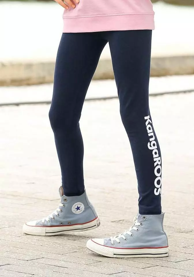 Die Leggings von Kangaroos sind ein Volltreffer für sportive und stylische Girls! Die elastische Qualität, die softe Baumwollmischung sowie der bequeme Gummizugbund der Fitnesshose ergänzen sich perfekt und sorgen für einen optimalen Sitz. Der große Markenlogodruck auf dem Bein ist ein wahrer Eyecatcher und rundet den trendigen Style der schmalen Stretchhose perfekt ab. Einfach mit Shirt, Top oder Hoodie kombinieren. Dazu Sneakers tragen, fertig. Ob für Schule, Freizeit oder Training – die Leggings von Kangaroos sind genau das Richtige für Mädchen mit viel Energie. Anziehen und durchstarten!