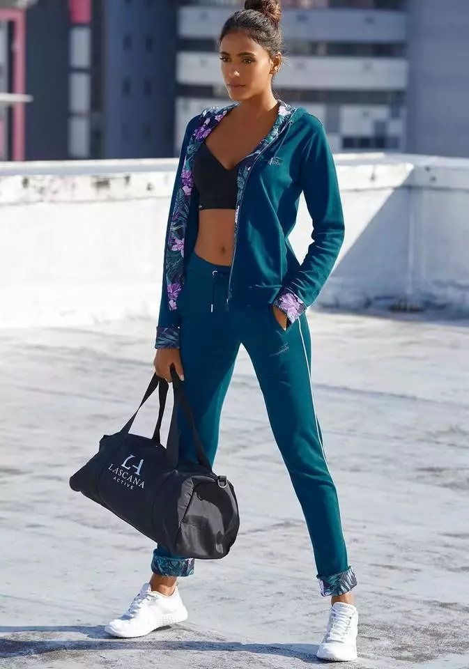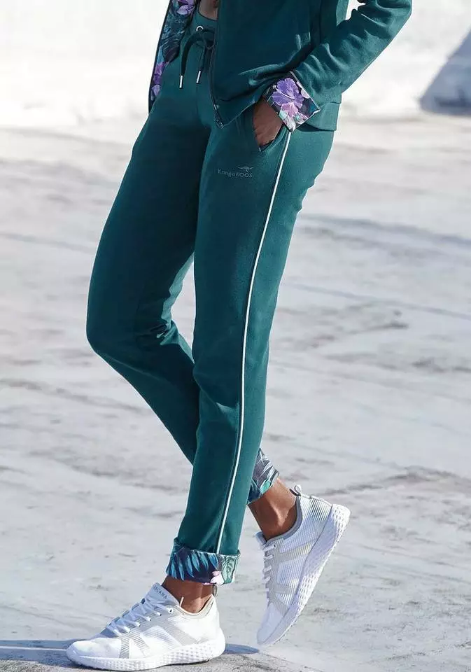 KangaROOS Relaxhose mit schmalem Piping Petrol, Schwarz