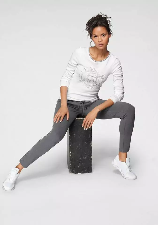 Für das Büro-Outfit kann das Oberteil mit einer Stoffhose und Pumps oder Ankle Boots kombiniert werden. Für ein sportliches Outfit können elastische Leggings angezogen werden.