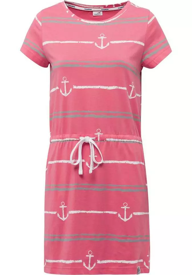 Herrlich leicht und wunderbar casual präsentiert sich dieses Kleid von Kangaroos. Ob alloverbedruckt oder unifarben: Das Shirt-Kleid schafft einen entspannten Look, mit dem man perfekt für die Freizeit ausgestattet ist. Ein modischer Akzent ist durch das Bindeband in der Taille gesetzt, durch das sich das figurbetonte Jerseykleid außerdem individuell in der Weite regulieren lässt. Es fällt schön locker und verspricht dank des weichen Materials ein besonders angenehmes Tragegefühl. Ob für einen Tag in der Stadt, zum Spazierengehen oder für die Grillparty mit Freunden: Das Kleid von Kangaroos macht alles mit!