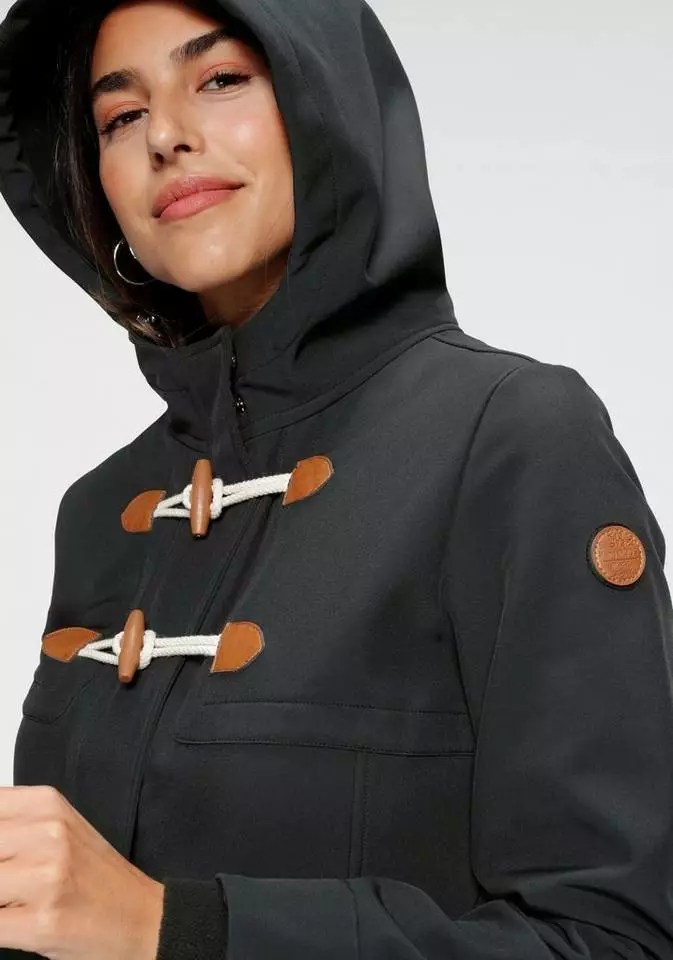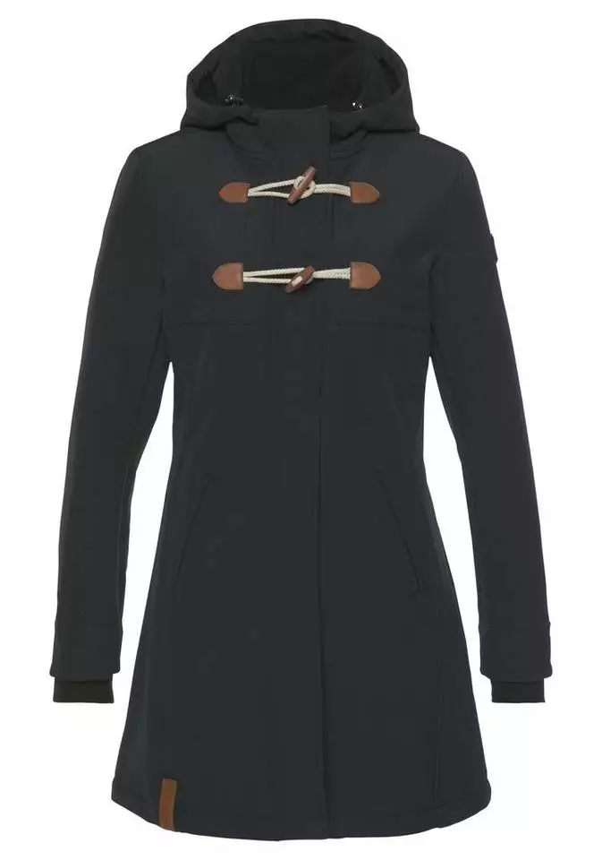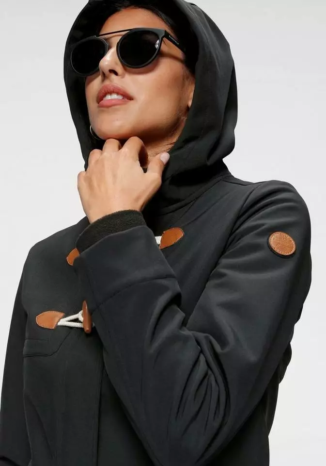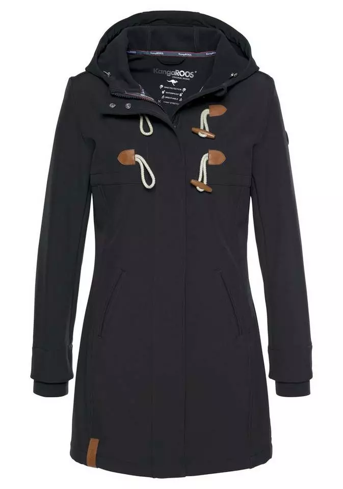 Warm und stylisch geht es in der Softshelljacke von Kangaroos vor die Tür. Damit du es gemütlich hast, halten der Reißverschluss, die darüberliegende Druckknopfleiste sowie zwei Knebelknöpfe die Damenjacke fest verschlossen. Mit der Kapuze und den seitlichen Einschubtaschen bleiben auch dein Kopf und deine Hände warm. Dank der antaillierten Form verleiht dir die Jacke eine feminine Silhouette. Die Übergangsjacke lässt sich toll mit all deinen Outfits kombinieren. Lässt dich nicht in der Kälte stehen: die Softshelljacke von Kangaroos.