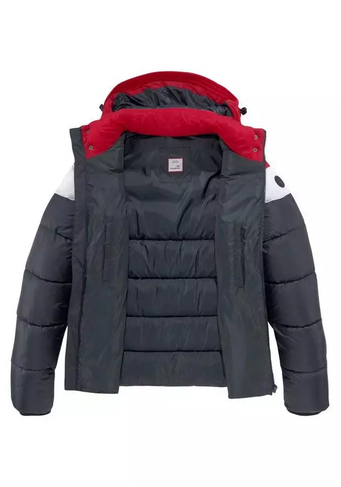 Diese Steppjacke von KangaROOS eignet sich gut für kühle, windige Tage. Der Badge sorgt für dekorative Details. Sie hat durch die Colorblocking-Optik einen markanten und kontrastreichen Look. Die Kapuze lässt sich per Kordelzug verstellen. Der Kragen steht nach oben und liegt am Hals an. Mit den Eingrifftaschen sind das Smartphone oder Kleingeld sicher verstaut.