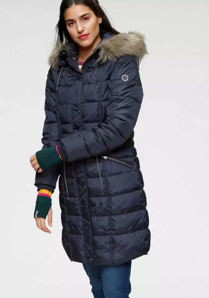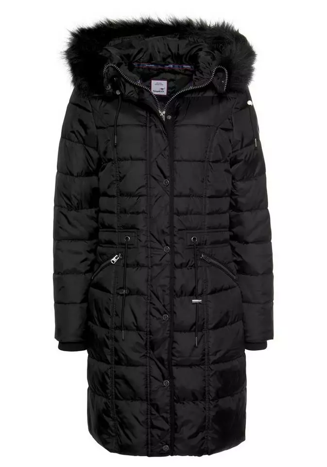 Wonderful Wintertime. Mit dem wärmenden Steppmantel von Kagaroos kannst du die kalte Jahreszeit rundum genießen. An der Kapuze sitzt eine kuschelige Borte aus Fake Fur und durch variable Tunnelzugbänder lassen sich Kragen und Taille nach Belieben variieren. Geräumige Eingrifftaschen gehören ebenfalls zur komfortablen Ausstattung des Wintermantels. Auch innen liegenden Bündchen und ein verblendeter Zwei-Wege-Zipper schützen vor Wind und Kälte. Machs dir gemütlich und gönn dir modischen Komfort – mit dem matt schimmernden Steppmantel von Kagaroos.