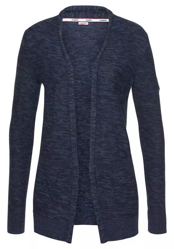Was Allrounder so beliebt macht, lässt sich besonders gut anhand des bequemen Cardigans von Kangaroos verdeutlichen. Die Strickjacke lässt sich leicht kombinieren und passt zu einer Jeans ebenso gut wie zu einer Stoffhose. Egal, ob am Tag oder in der Nacht, die Jacke kommt zum Einsatz. In optischer Hinsicht punktet das Modell mit seinem links gestrickten Muster und der melierten Baumwollmischung. Kommt in offener Form mit Schalkragen: der Cardigan von Kangaroos.