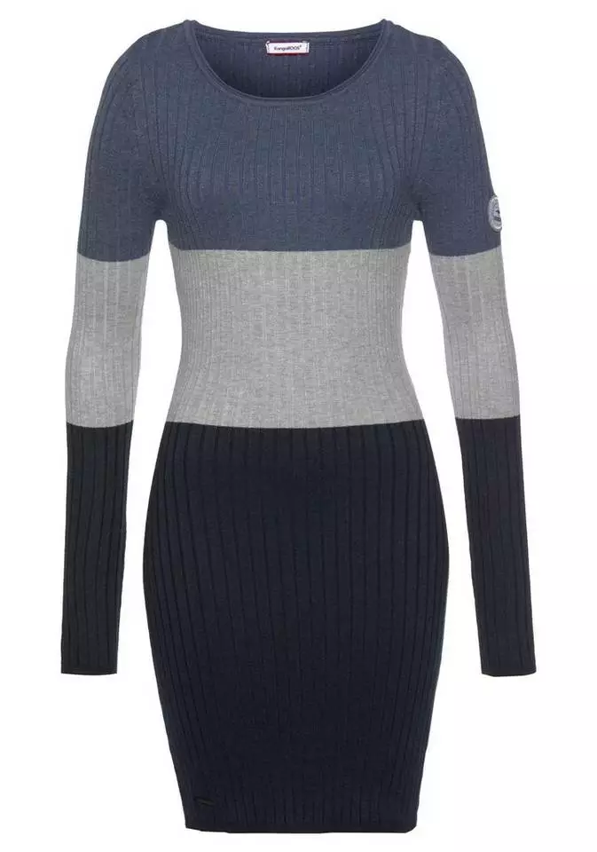 Ein Kleid, hundert Gelegenheiten: Das Strickkleid von Kangaroos ist mit seiner coolen und gleichzeitig femininen Optik immer passend. Der trendige Colorblocking-Look steht im Mittelpunkt dieses Designs. Der tiefe Rundhalsausschnitt des Langarmkleids und das Labelbadge am Ärmel harmonieren perfekt dazu. Die elastische Rippenstruktur schmiegt sich passgenau an deine Konturen, deshalb sitzt das figurbetonte Rundhalskleid auch so bequem. Ob du Sneakers oder Stiefeletten zu dem Strickkleid von Kangaroos trägst, entscheidest letztendlich du!