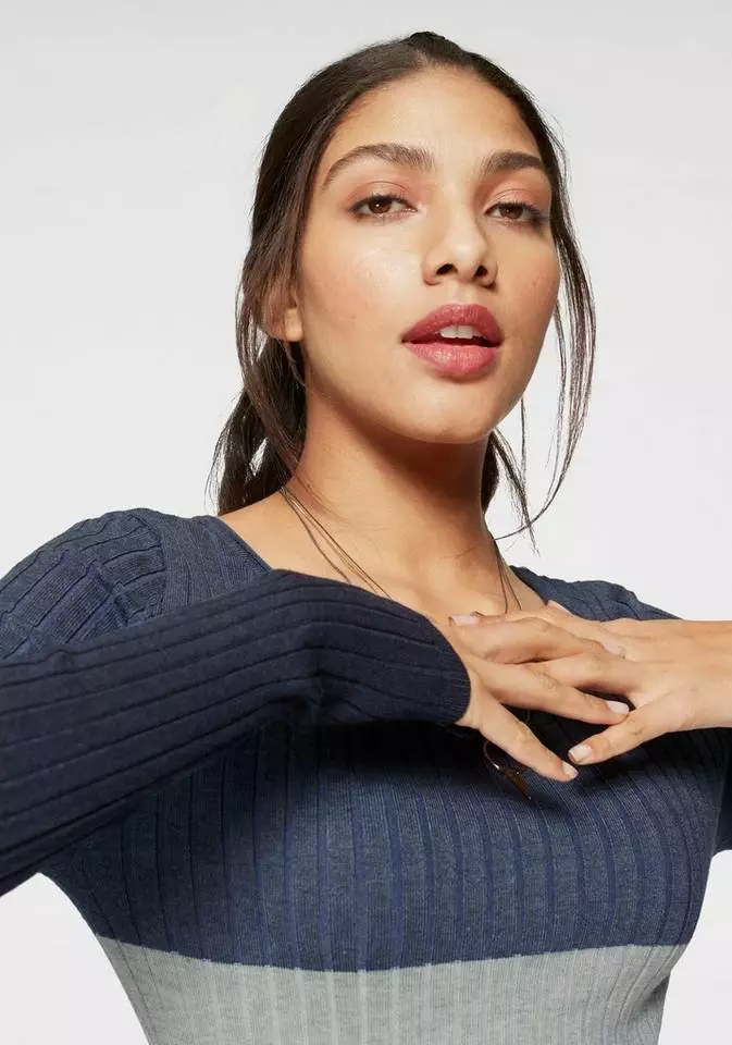 | Besondere Merkmale | in Rippstrick und Colorblocking-Optik |