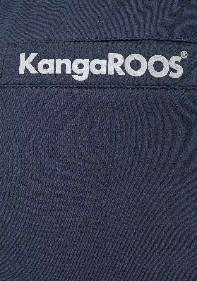 Lieblingsstück! Die Jogginghose von Kangaroos bringt einen coolen Streetwear-Style in deinen Look. Dabei begeistert die leger geschnittene Hose mit trendigen, teilweise glitzernden Kontraststreifen und Knöpfen an den Außenseiten. Das elastische Bündchen kannst du mit Kordelzug individuell regulieren, die breiten Rippbündchen an den Beinabschlüssen und die weiche Baumwollqualität mit Stretchanteil versprechen einen optimalen Sitz der Jogpants und erstklassigen Tragekomfort. Seitliche Eingrifftaschen und eine Fake-Paspeltasche am Gesäß runden das sportive Design der Damenhose ab. Stylische Glanzakzente setzt dazu der kleine Logoschriftzug hinten. Ob in der City, beim Work-out oder Zuhause, die Jogginghose von Kangaroos garantiert dir ein lässiges Outfit!