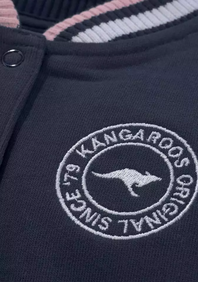 Sportlicher Chic: Die gerade geschnittene Sweatjacke von Kangaroos lässt die Herzen kleiner und großer Mädchen höher schlagen. Kids, die Wert auf einen modischen Style legen, werden von der innen weich angerauten Jacke mit ihren langen Ärmeln im Kontrast-Look und den gestreiften Rippbündchen begeistert sein. Auch die Stickerei auf der Brust der Mädchenjacke hinterlässt einen bleibenden Eindruck. Die Verschlussleiste lässt sich dank der Druckknöpfe kinderleicht öffnen und schließen. Für jeden Tag: Die Sweatjacke von Kangaroos mit Eingrifftaschen ist ein Alleskönner.