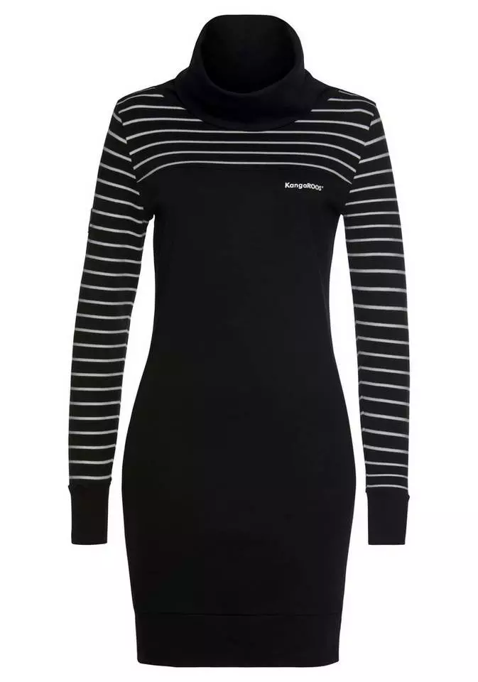 Stilsicher und trotzdem lässig: Mit dem Sweatkleid von Kangaroos gelingt dir immer ein modischer Auftritt. Der Schlauchkragen sitzt schön weit und halsfern, die langen Ärmel samt Schulterpartie werden durch feine Kontraststreifen effektvoll betont. Soft anliegend reicht das lässige Kleid bis zum Oberschenkel und schließt mit breiten Bündchen an den Kanten ab. Aus Baumwolle in Interlock-Qualität gearbeitet, stylisch und immer zur Stelle wenn schnell ein kompletter Look stehen muss: das zeitlose Sweatkleid von Kangaroos.