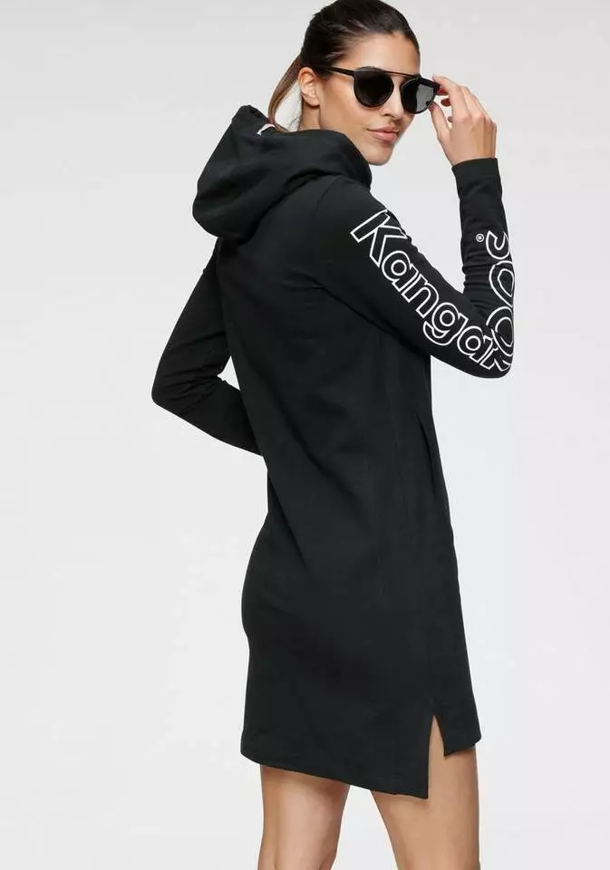 Wie schön, dass es zum lässigen Sweater auch ein feminines Pendant gibt! Das Sweatshirtkleid von Kagaroos sorgt mit Logo-Schriften in Kontrast für Aufmerksamkeit: am äußeren Ärmel in XXL und in kleiner Version auf der Brust. Eingrifftaschen in der Seitennaht und gerade Saumkanten sind Ausdruck von modernem Komfort. Für genügend Bewegungsfreiheit und ein tolles Tragegefühl sorgt das Kleid durch Seitenschlitze und die besonders weiche, innen angeraute Materialmischung. Stylisch und bequem: das Sweatshirtkleid von Kagaroos.