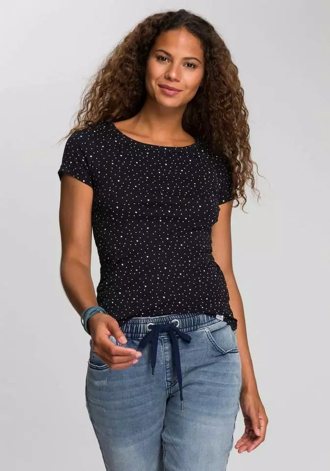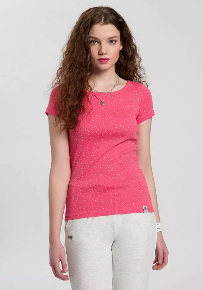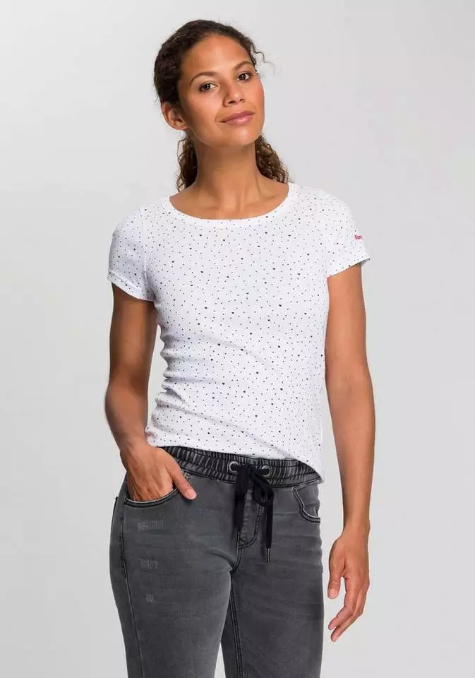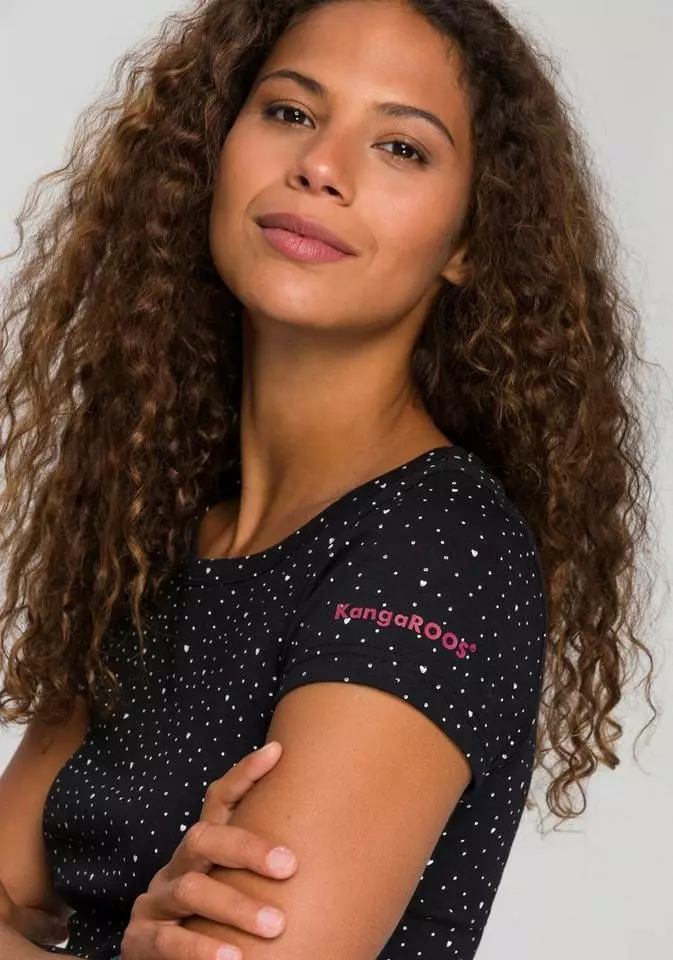 Das cool bedruckte T-Shirt von Kangaroos kommt garantiert ganz groß raus. Die schmale Passform des Kurzarmshirts setzt die Silhouette perfekt in Szene. Ein etwas weiterer, eingefasster Rundhalsausschnitt rundet das Design stilecht ab, während der trageangenehme Jersey bei dem Rundhalsshirt für einen hohen Komfort sorgt. Ob an heißen Tagen mit Shorts oder Minirock oder an kalten mit Jeans oder Chinohosen kombiniert – das T-Shirt von Kangaroos ist immer eine gute Wahl!
