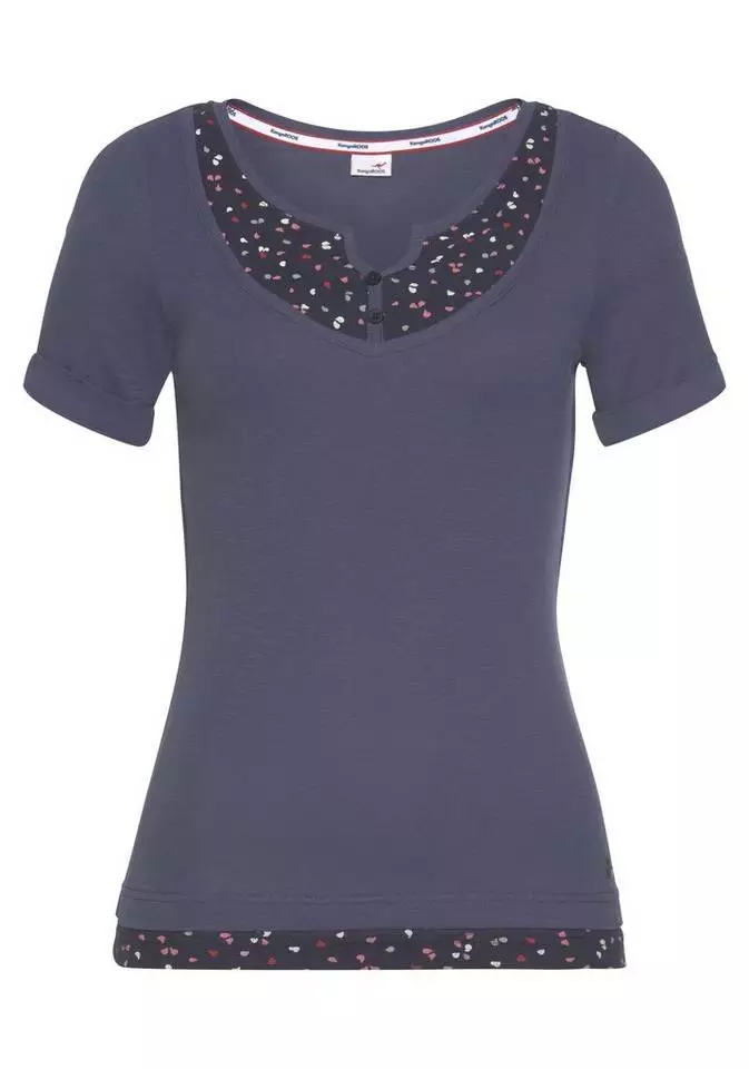 Gesucht und gefunden: Schau dir das T-Shirt von KangaROOS mal genauer an. Die kurzen Ärmel enden in einem Aufschlag. Dieses Shirt ist hüftlang sowie sehr figurbetont geschnittenT-Shirt, sodass deine Silhouette schön betont wird.