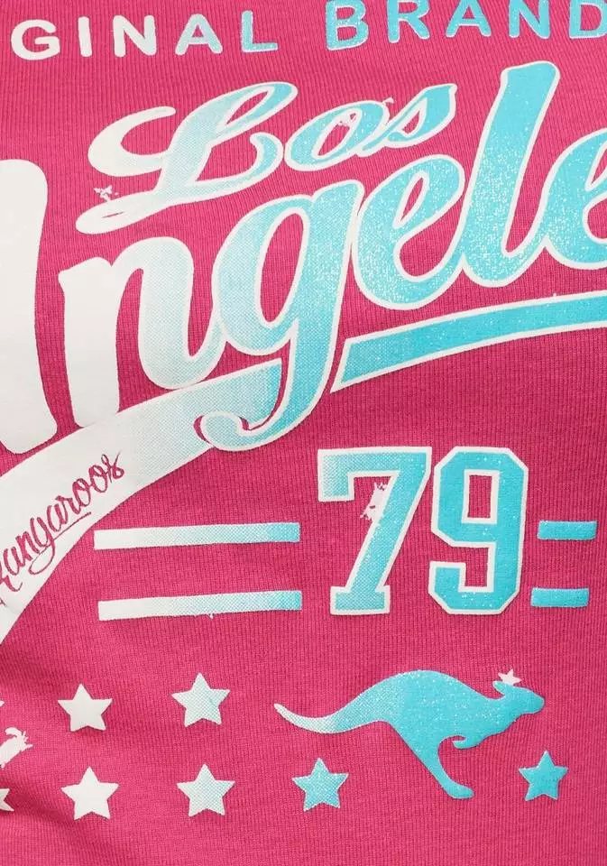 Auf so ein T-Shirt wie hier von Kangaroos kannst du dich in Sachen Styling immer verlassen. Das Design mit Rundhalsausschnitt und kurzen Ärmeln ist klassisch und lässt sich in alle erdenklichen Richtungen kombinieren. Weil ein Basic-Shirt aber nicht unbedingt immer unifarben und zurückhaltend sein muss, ist dieses Printshirt mit einem Allovermuster und einem auffälligen Schriftzug vorn bedruckt. So kannst du das Basic auch mal zum Highlight eines Outfits machen. Geht nicht gibt`s nicht – mit dem Shirt von Kangaroos ist alles möglich.