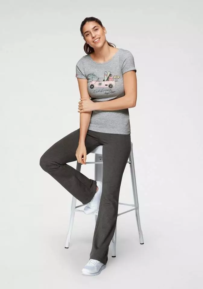 Das T-Shirt von KangaROOS bildet die Grundlage für jedes stilsichere Outfit. Mit dem Aufdruck sieht es sowohl locker als auch frisch aus. Die kurzen Ärmel enden in einem Aufschlag. Dieses Shirt hat einen Rundhalsausschnitt und ist hüftlang sowie sehr figurbetont geschnitten, sodass es deine Figur auf schöne Weise betont.