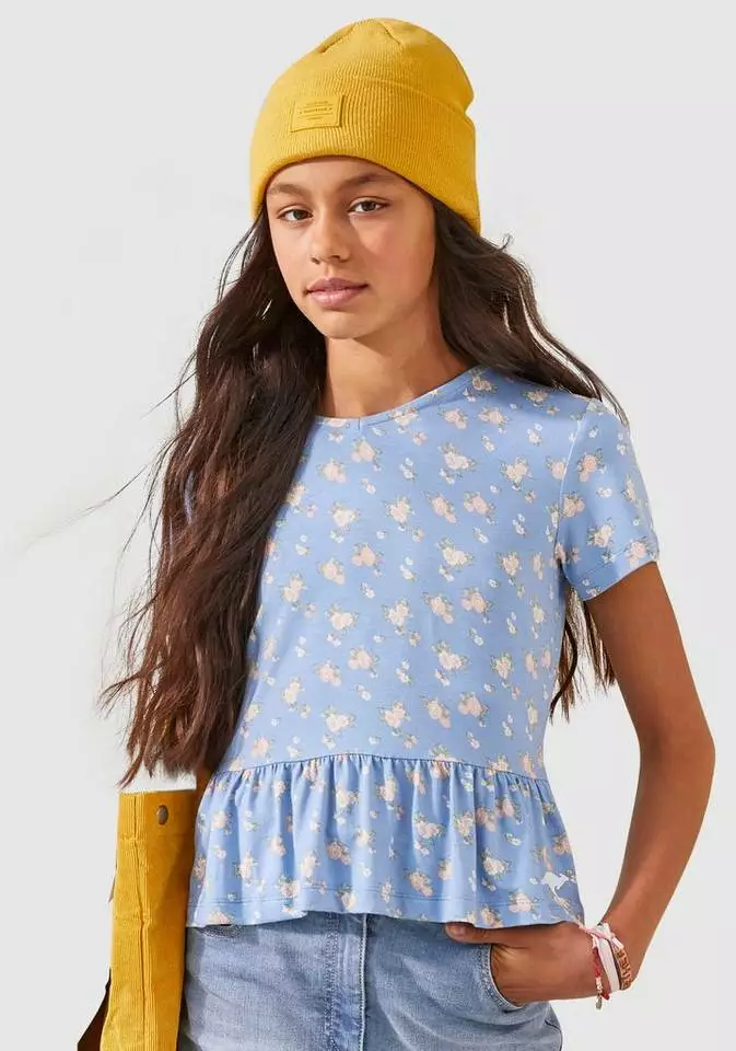 Ob vor, in oder nach der Schule — das T-Shirt ist eine gute Wahl. Als Kombipartner lässt sich das Shirt mit einer engen Hose genauso gut tragen wie mit einer weiten. Heute mal keine Lust auf eine Hose? Auch ein Rock sieht gut dazu aus. Ein kleiner Tipp: Wird das Oberteil in den Bund gesteckt, kommt der Look noch besser zur Geltung.