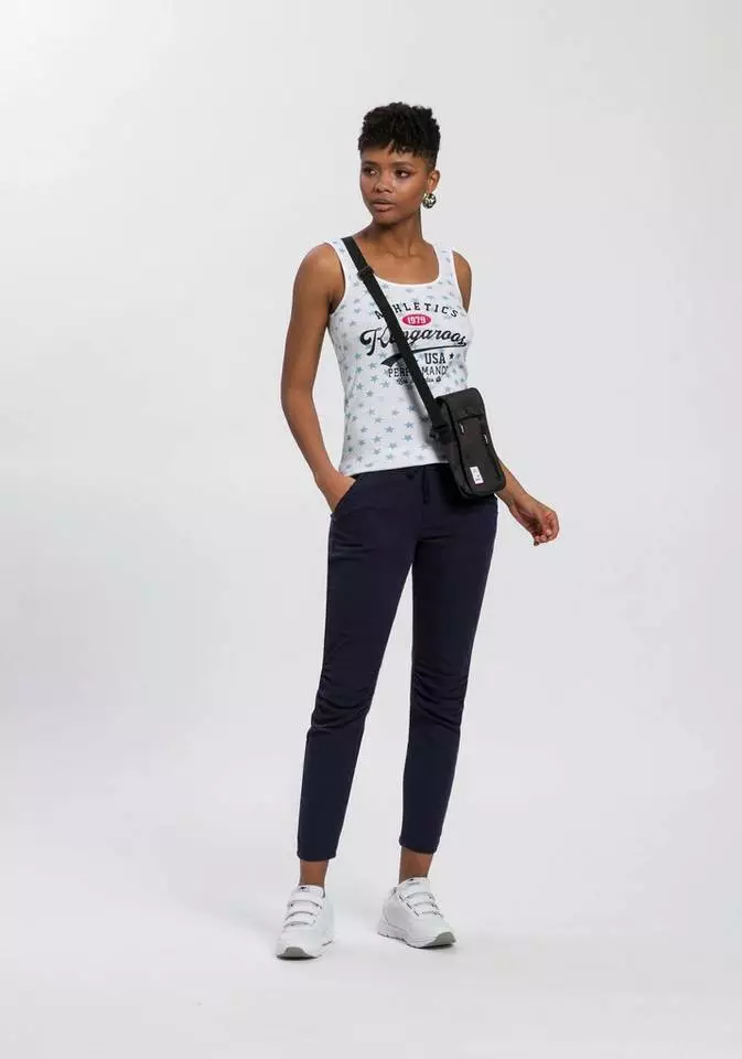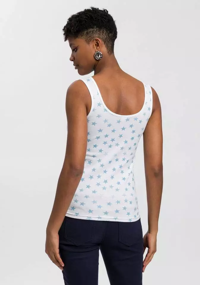 Du möchtest ein Outfit, das hervorsticht? Dann schau dir dieses Tanktop von KangaROOS genauer an. Denn das Top mit Stern-Muster sorgt für einen Blickfang, der Pepp in dein Outfit bringt. Dieses Top hat einen Rundhalsausschnitt und ist hüftbedeckend sowie sehr figurbetont geschnitten, sodass deine Silhouette schön in Szene gesetzt wird.