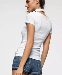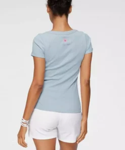 KangaROOS T-Shirt mit blumigen Logodruck im Vintage-Retro-Look – NEUE KOLLEKTION Blau-melange, Weiß